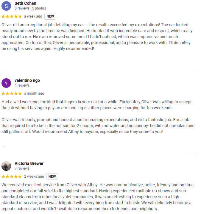 • Your car will look, feel, and smell like new again